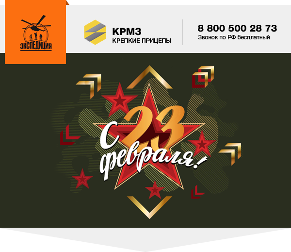 Компания Прицепы «Экспедиция» поздравляет вас с 23 Февраля! Желаем благородства, отваги, физической силы. Всегда правильных решений, шикарного чувства юмора, потрясающих инициатив и жизнелюбия. Мира, справедливости и мужества!