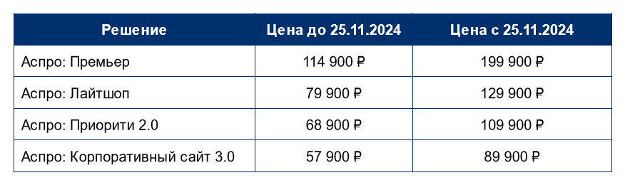 | С 25 ноября 2024 меняются условия у одного из самых популярных разработчиков готовых решений на 1С-Битрикс. | | | | Как говорится, почувствуйте разницу: | | | | Стоимость продления лицензии тоже вырастет. Так что если вы до сих пор не приняли решение о покупке, самое время сделать это сейчас! | | | | Интернет-агентство «Амадо» поможет запустить корпоративный сайт или интернет-магазин на 1С-Битрикс на решении «Аспро» с учётом ваших пожеланий. Создадим индивидуальное оформление, настроим SEO, подключим систему аналитики и реализуем интеграцию со сторонними сервисами. | | | | | | | | Вы получили это письмо, так как являетесь клиентом компании «Амадо» или обращались в наше интернет-агентство. Если не хотите получать рассылку на этот адрес, нажмите на ссылку отписки в конце письма. | | | |